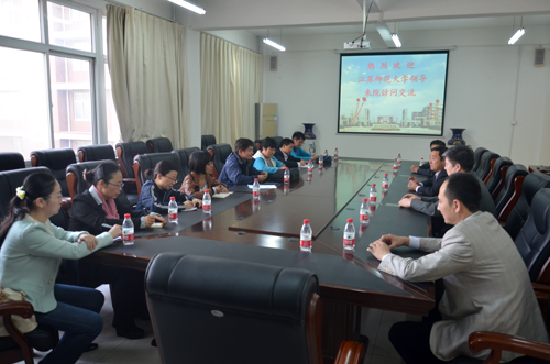 在行政楼二楼会议室,王大勇执行院长代表学院向胡福年副院长一行来院访问表示热烈欢迎,并从专业设置、招生规模、实验室建设、师资队伍建设、教学组织与管理等方面介绍了我院的基本情况。胡福年副院长对我院的热情接待表示衷心感谢,简要介绍了江苏师范大学电气工程及自动化学院的教学管理和专业建设情况,表示带队来访主要是为了学习我院轨道交通信号与控制专业实验室建设的先进经验。随后,双方领导还就工科专业人才培养、专业实验室建设等方面情况进行了广泛交流。