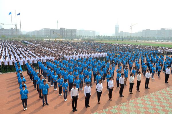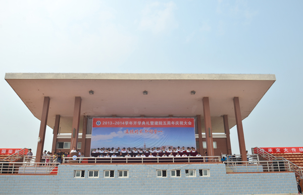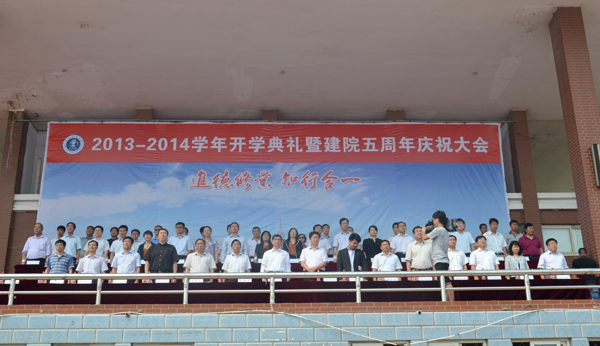 9月7日上午,我院2013-2014学年开学典礼暨建院五周年庆祝大会在学院体育场隆重举行。北京交通大学校长宁滨,北京交通大学党委副书记、我院院长高福廷,沧州渤海新区管委会副主任、黄骅市政府市长潘海瀛,祥兴集团副总经理、海滨学院董事薛君南,黄骅市政府副市长郑增强,北京交通大学各学院及职能部处负责人,华城公司负责人及校企合作企业的代表等领导和嘉宾出席大会并在主席台前排就坐。我院全体领导、各系部处室负责人、全体教职员工以及万余名在校生参加大会。大会由我院执行院长王大勇主持。
