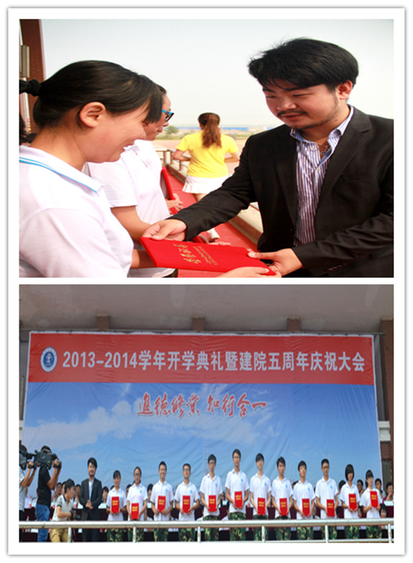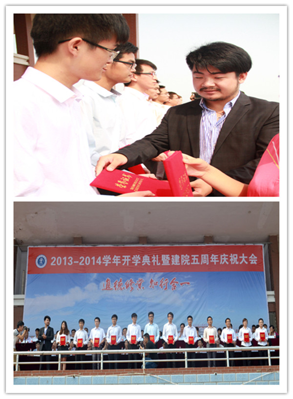 会上,我院副院长兼副书记张长铎宣读了2012-2013年度学院优秀教职工表彰决定,副院长贾怀义宣读了在学院工作满五年的教职工奖励决定,副院长徐维祥宣读了“祥兴奖学金”、“行远助学金”获奖学生表彰决定。随后,主席台前排领导分别为院级优秀教职工代表和在学院工作满五年教职工代表颁奖;薛君南董事还为获奖学生代表分别颁发了祥兴奖学金和行远助学金。