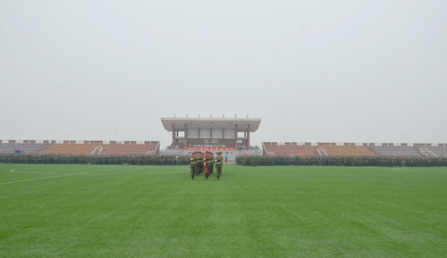 7月4日上午8:00,我院2012级军训开训典礼在学院运动场举行。我院执行院长王大勇,副院长吴子成,中国人民解放军驻北京交通大学选培办干事、我院军训团团长张茂栋,我院学生处处长、军训团政委孙文博,学生处副处长、军训团参谋长黄璐璐以及各系主任助理,各军训营营长(国防生)、指导员(辅导员)出席典礼。2012级全体同学在教官带领下整齐列队参加典礼。开训典礼由学生处王庆松老师主持。