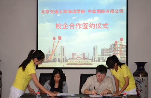 5月24日下午3:00,我院与中软国际有限公司校企合作签约仪式在我院行政楼二楼会议室举行。我院执行院长王大勇,中软国际卓越培训中心总经理罗娅,北京交通大学软件学院副院长赵宏,我院副院长贾怀义、徐维祥,招生就业处处长冯宝玺,计算机科学与技术专业负责人李向前副教授出席签约仪式。签约仪式由李向前副教授主持。