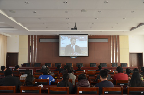 11月15日上午11:00,院党委组织教职工党员在行政楼五楼会议室收看新一届中央政治局常委见面会现场直播。