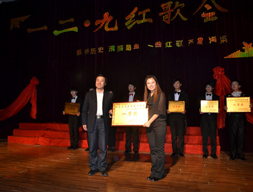经过评委们的集体打分和综合评审,最终,经济管理系荣获一等奖,交通运输系、艺术系荣获二等奖,土木工程系、计算机科学系、外语系荣获三等奖,与会领导分别为获奖集体颁奖。