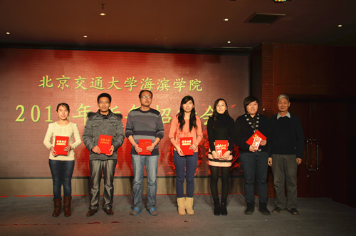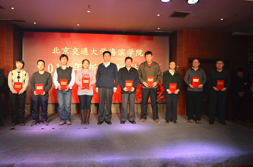 在颁奖仪式上,我院党委书记路加栓宣读了《关于表彰2012年度学院先进单位和优秀中层干部的决定》,边老刚副主席为学院先进单位颁奖,高福廷院长为优秀中层干部颁奖。副院长吴子成宣读了《关于表彰2012年度优秀兼职教师的决定》,潘海瀛市长为优秀兼职教师颁奖。副院长贾怀义宣读了《关于表彰2012年度“瑞和方圆”奖教金优秀青年教师和优秀青年教育工作者的决定》,谈振辉教授为优秀青年教师和优秀青年教育工作者颁奖。