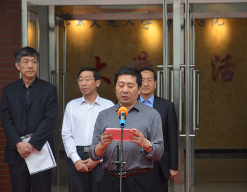 北京交通大学党委副书记、我院院长高福廷致剪彩仪式开幕词,他首先代表我院全体师生向出席剪彩仪式的各位专家和领导表示热烈的欢迎,同时希望我院的学生工作队伍再接再厉、踏实进取,以大学生活动中心落成启用为契机,再谱我院学生工作的新篇章。河北省学位办副主任赵清云致贺词,祝贺我院大学生活动中心落成启用,同时结合我院实际,对我院发展提出了指导性意见,他相信在我院全体师生的共同努力下,我院的建设和发展一定会再创新高。最后,孙文博处长宣布北京交通大学海滨学院大学生活动中心正式使用,到场的各位专家和领导共同为大学生活动中心剪彩。