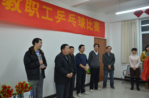 2011年12月14日—17日,我院首届教职工乒乓球比赛在行政楼教工之家成功举办。执行院长王大勇,党委书记路加栓,副书记、副院长、工会主席张长铎,副院长贾怀义、周俞波等领导出席了开、闭幕式,并积极参与其中。