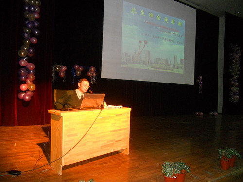 随后,葛云松大校用双语做了题为“此生难舍是非洲”的人文讲座,他用生动而形象的语言为大家描述了他的第二故乡——坦桑尼亚。他用一幕幕外交轶闻趣事,一张张栩栩如生的照片,讲了英语学习的重要性,他的报告赢得了大家一阵又一阵的热烈掌声。