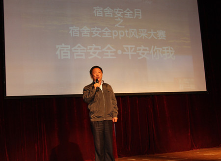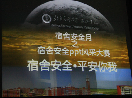 2011年11月9日是全国消防安全日,为加强我院学生对宿舍安全的重视力度,由我院自律委员会主办、团委社团部计算机协会承办的“北京交通大学海滨学院宿舍安全月之宿舍安全PPT风采大赛”的决赛评比活动在报告厅隆重举行。出席大赛的嘉宾及评委有执行院长王大勇、党委书记路加栓、副院长吴子成、学生处处长孙文博、公寓管理中心主任孙丽华以及学生处和计算机系的老师。