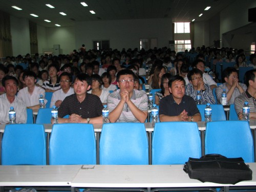 张处长首先为我们诠释了志愿者的含义、口号和精神。随后重点论述了大学生西部志愿服务。张处长表示,该活动是对大学生心灵的洗涤和思想的升华,把“大学生、志愿服务、时尚”很好的结合在了一起,并强调了志愿服务的优势:1、可以广交朋友;2、为自己创业奠定基础;3、在基层和工作岗位受到重视;4、提高自己的社交和沟通能力;5、提高自己施展才华的机会;6、全面的认识社会,辩证的看待问题。他提出政府的政策是“服务无偿,成本有偿”,以此解决了我们对志愿服务费用的顾虑。最后,张处长和学生进行了现场互动,就毕业支援西部问题进行了更加深入的探讨。学生代表将承载同学们祝福的鲜花献给张处长,整场讲座在轻松愉悦的氛围中结束。