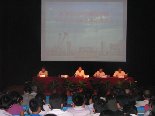 6月16日晚,我院“学士学位申报工作动员大会”在实验楼报告厅隆重举行。北京交通大学党委副书记、我院院长高福廷,党委书记张平之,副院长吴子成、周俞波出席大会,全体教职工和部分学生代表参加了本次大会。会议由执行院长王大勇主持。