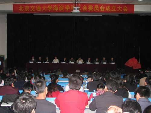 2011年4月15日,北京交通大学海滨学院工会委员会成立大会在实验楼报告厅隆重举行。北京交通大学党委副书记、工会主席、海滨学院院长高福廷教授,黄骅市委常委、组织部长黄瑞强同志,北京交通大学工会常务副主席殷快同志,黄骅市总工会副主席曹绪贵同志莅临祝贺并与我院领导和新当选的工会主席、副主席在主席台就坐。成立大会由执行院长王大勇同志主持,来自学院各单位的100多名工会会员参加了大会。北京交通大学工会代表团和黄骅市总工会有关领导也专程到会祝贺。
