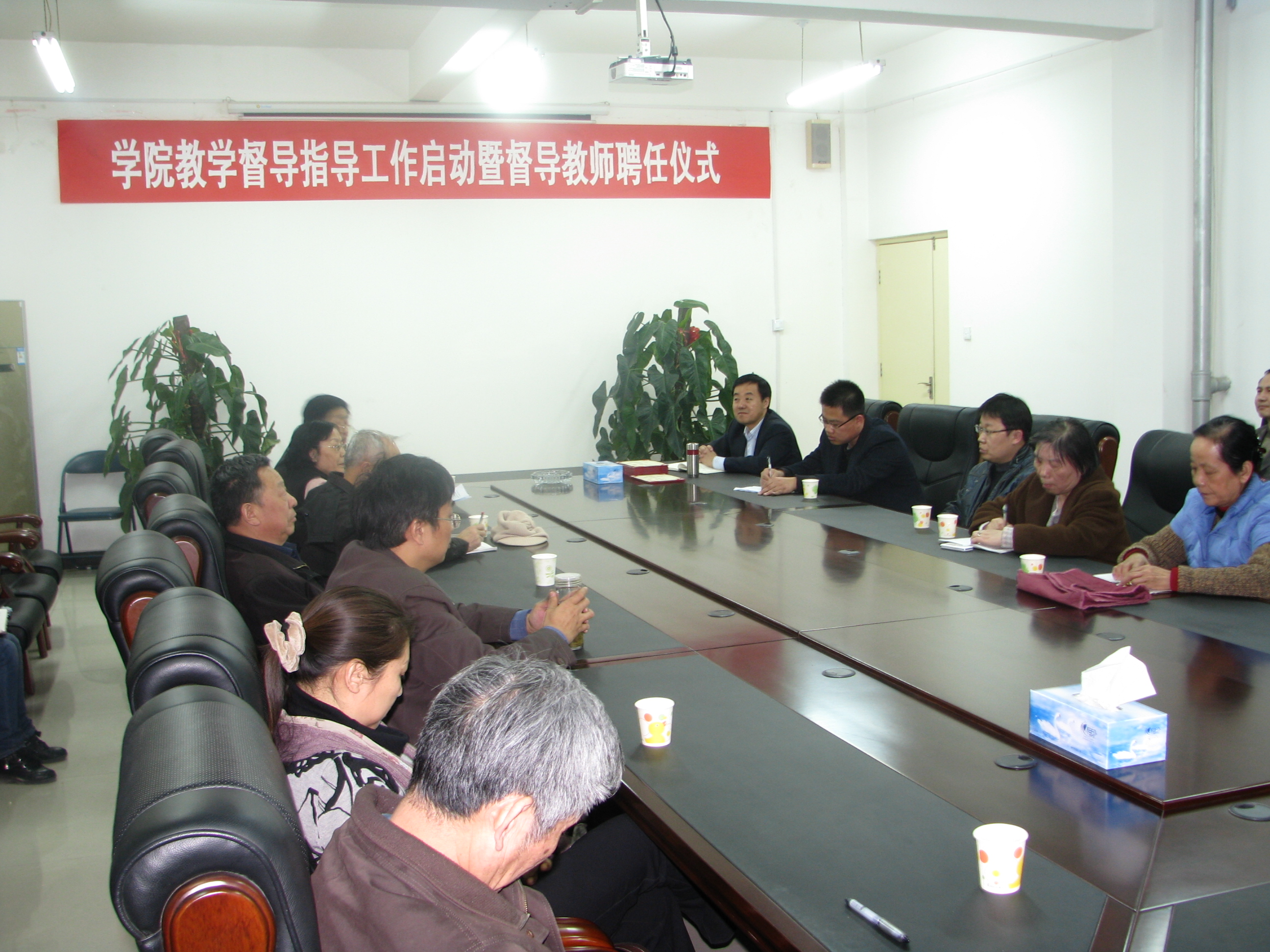 3月25日晚,我院“教学监督检查工作启动暨督导教师聘任仪式”在行政楼二楼会议室隆重举行。王大勇执行院长、张长铎副书记、副院长、吴子成副院长及教务处、学生处、办公室等相关部门领导出席了本次会议。会议由教学监督检查指导办公室主任叶斌主持。