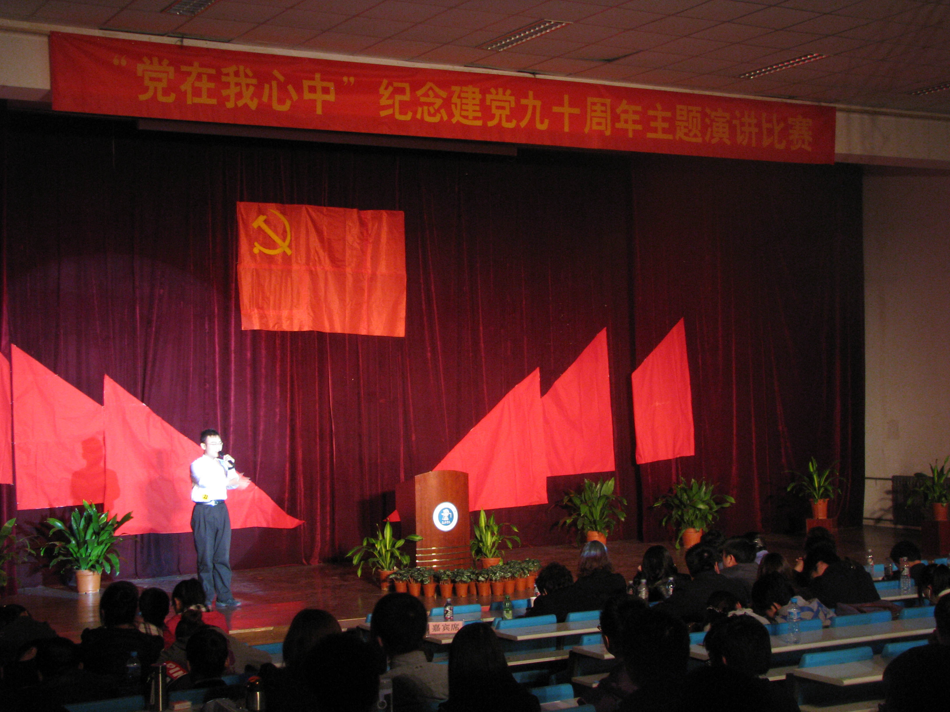 大赛以弘扬中国共产党九十年的光辉历程和丰功伟绩为主要内容,旨在院内掀起一场爱党爱国主义教育新高潮。经过严格的初赛选拔,最终20名选手脱颖而出。在决赛中,选手们紧扣演讲主题,从不同角度、用不同的风格,以朴实的语言和真挚的感情,表达了对祖国的热爱、对党的忠诚。最终,来自电气1007班的马越同学折桂。