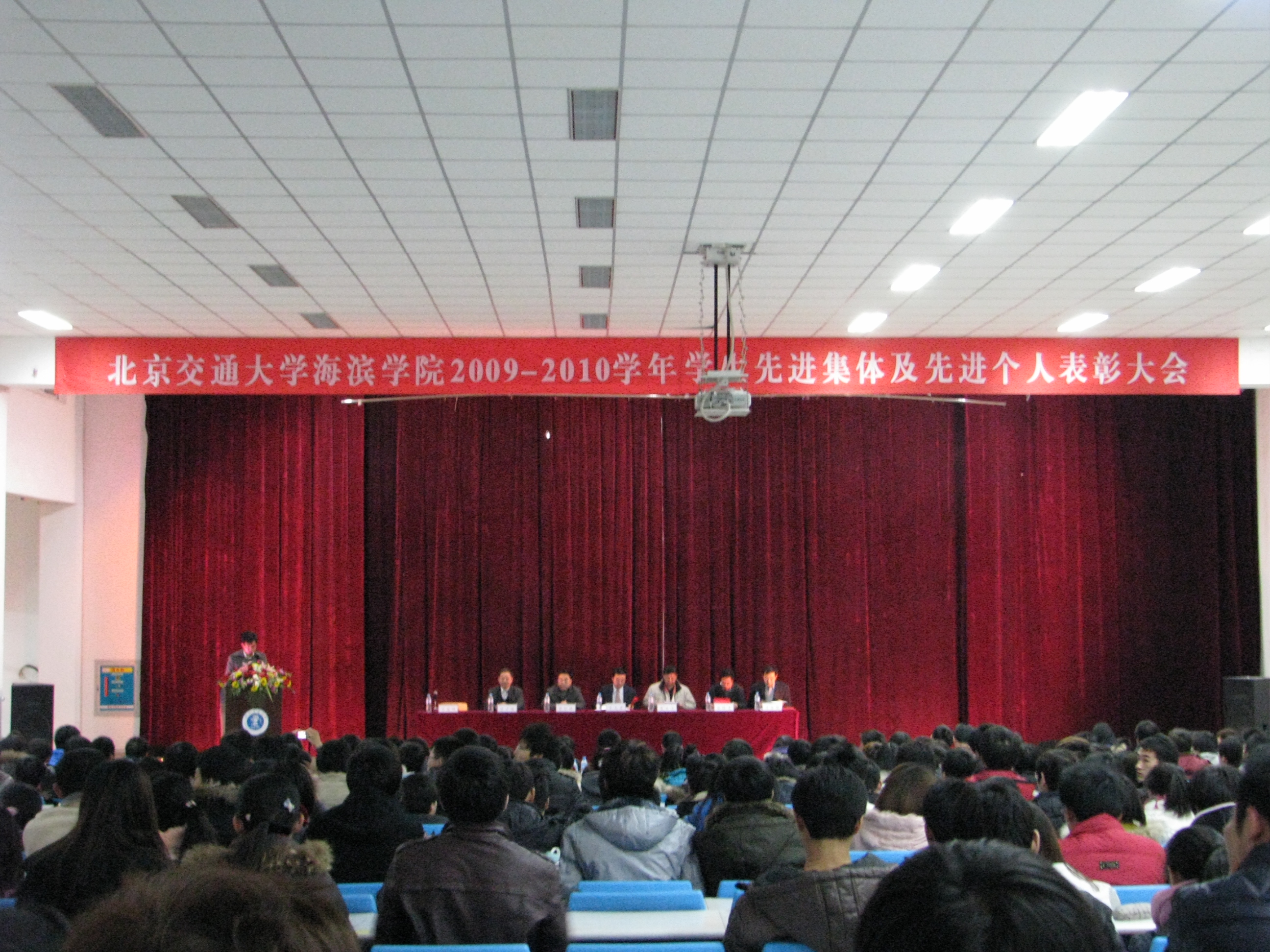 2010年12月24日下午16点,“北京交通大学海滨学院2009-2010学年学生先进集体、先进个人表彰大会”在中心报告厅隆重举行。执行院长王大勇,党委书记、副院长张平之,副书记、副院长张长铎,副院长贾怀义、吴子成、周俞波出席大会并在主席台就座。大会由学生处处长王友双主持。