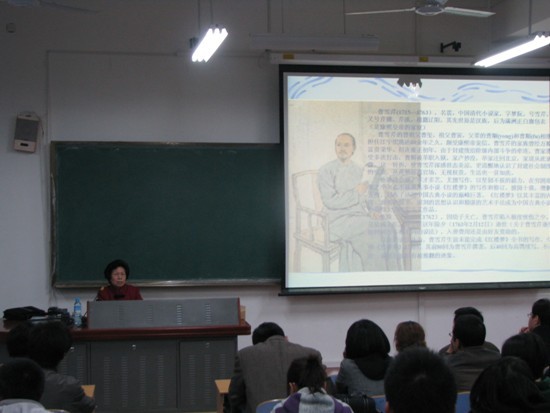《红楼梦》是中国古代的百科全书,而曹雪芹在《红楼梦》中的诗词中更是囊括了很多方面的内容,尤为“金陵十二钗”最著名,成为书中的一道风景,也是红学家们探讨“红学”的依据。高教授从宝钗、黛玉的判词讲起,让师生领略了曹霑洪厚的功底。伴随《红楼梦》中凄美、婉转的曲调,同学们听得如痴如醉,偌大的教室座无虚席,大家似乎进入了“红楼”的“太虚幻境”。