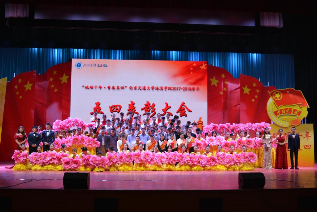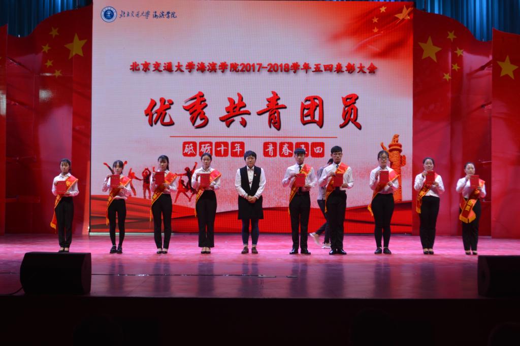 党委书记魏旺强为获得2017-2018学年北京交通大学海滨学院“五四红旗团委”的获奖集体颁奖