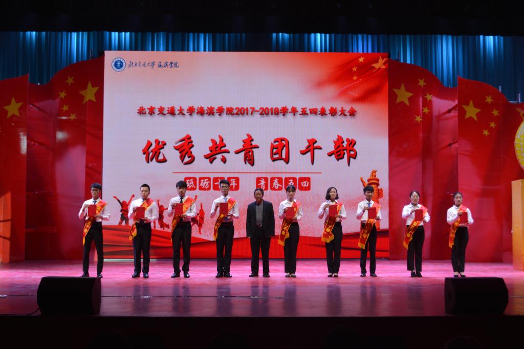 教务处处长李少华为获得2017-2018学年北京交通大学海滨学院“优秀共青团员干部”代表颁奖