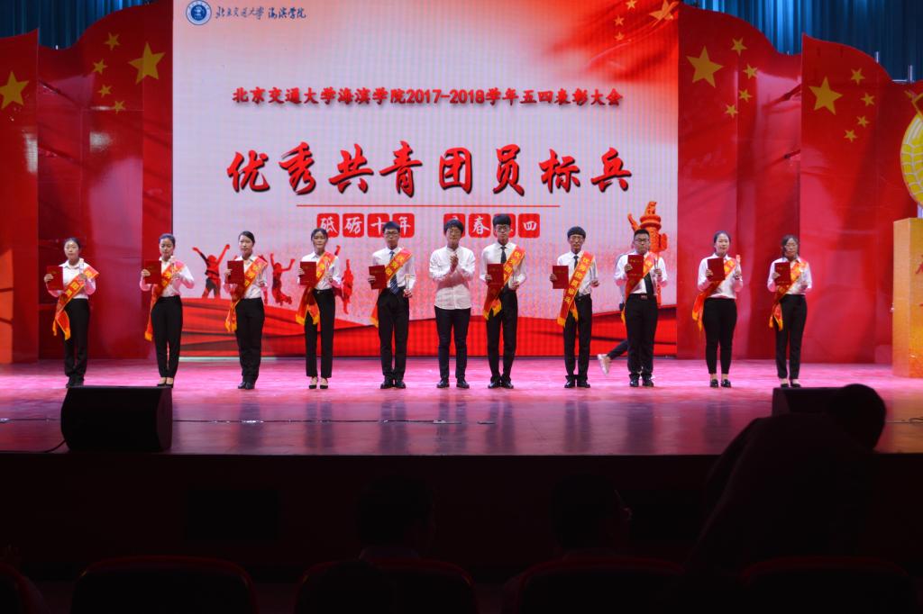 招生就业处处长邵晓康为获得2017-2018学年北京交通大学海滨学院“优秀共青团员标兵”代表颁奖