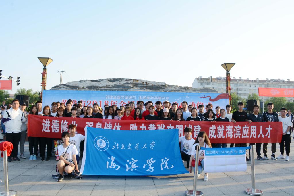 5月19日上午,必赢官网师生代表共计68人参加了黄骅市第三届以“创建全国文明城市·全民参与共建共享”为主题的全民健步走活动,全体参赛人员身穿印有“文明黄骅·精彩有我”的T恤开始参加比赛。