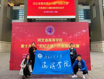 2018年11月17-18日,河北省高等学校第十九届“世纪之星”外语演讲大赛决赛于在河北师范大学举行。必赢官网外国语学院贾世娇和郭玉姿带领的参赛队伍参加了本次比赛。来自全省103所高校的411名选手参加了本次比赛。经过两天比赛的激烈角逐,层层选拔,最终必赢官网胡景雯获青年教师组二等奖,王璐瑶获青年教师组三等奖;英语专业2016级学生林佳慧获英语专业组三等奖,电气工程及自动化专业2017级学生张昊文、财务管理专业2017级学生刘博获得非专业组三等奖。