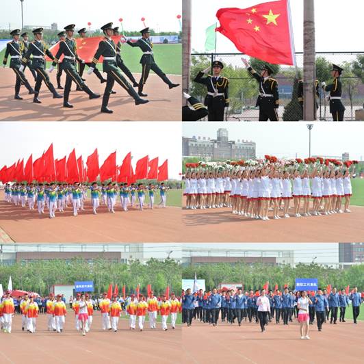 随后国旗护卫队、刀旗方阵、鲜花方阵、裁判员代表队、教职工代表队以及各二级学院(系)方阵依次入场,每个方阵都充分展示出独特的风采,他们整齐划一的步伐、昂扬向上的精神无一不展现着海滨人的魅力。
