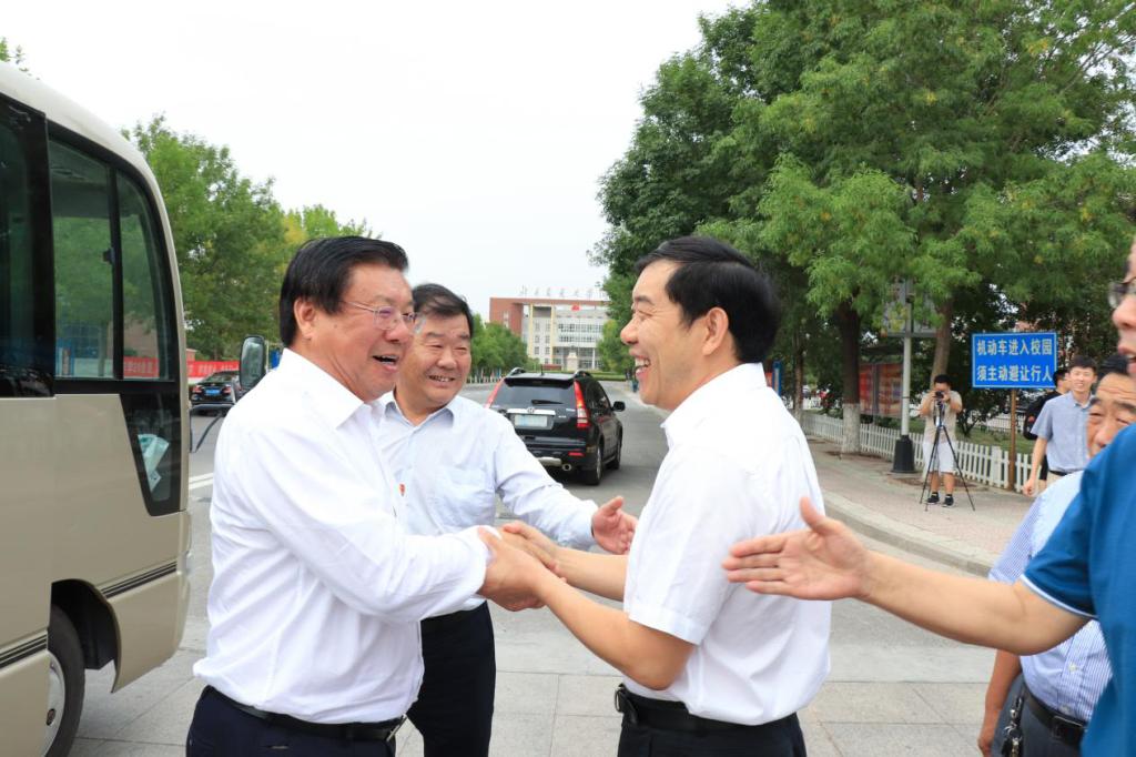 9月10号下午2点,河北省沧州市委常委、沧州渤海新区党工委书记、管委会主任张国栋一行,来必赢官网慰问并调研思政课建设工作。必赢官网全体校领导及教师代表接待了张国栋书记一行。