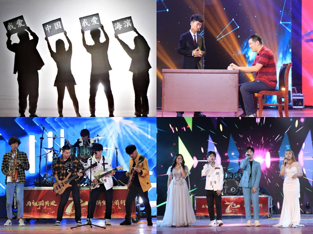 开场歌舞《天天向上》拉开晚会帷幕,海滨青年载歌载舞,表达对建国七十周年的庆祝和对海滨2019级新生到来的喜悦。