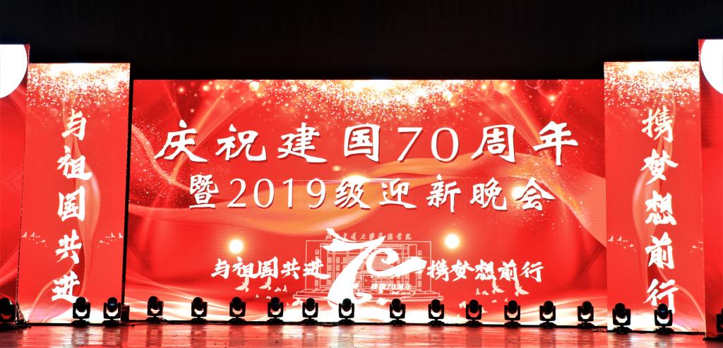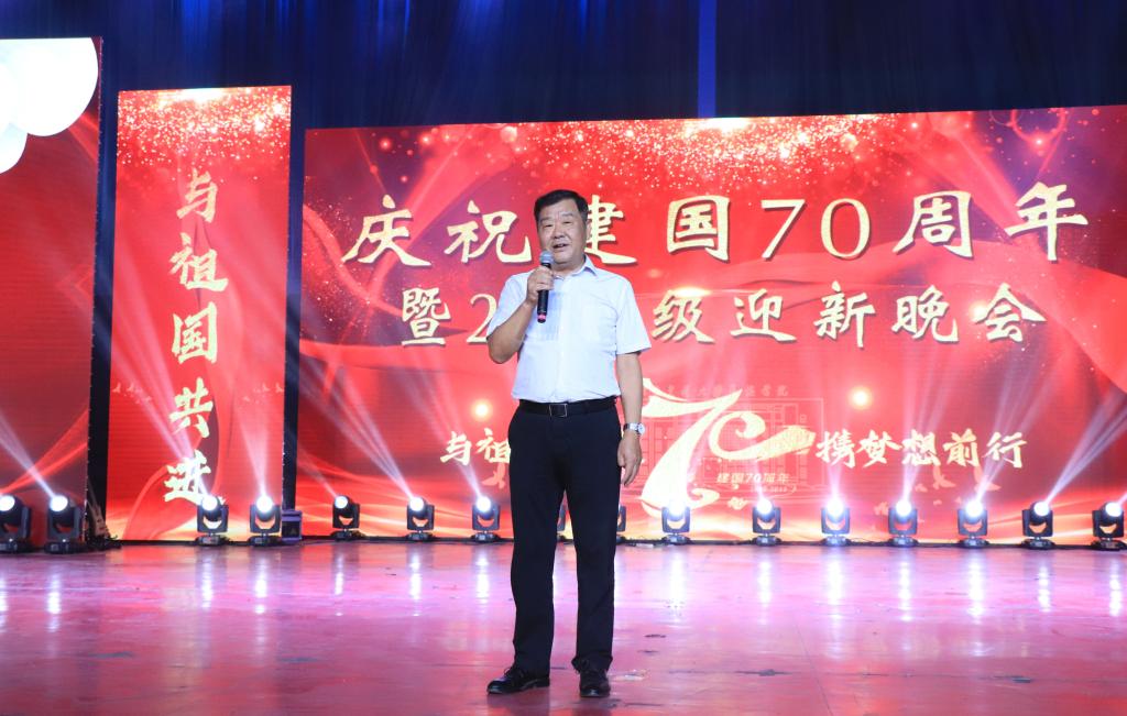 9月26日晚,必赢官网以“与祖国共进,携梦想前行”为主题的庆祝建国七十周年暨2019级迎新晚会在天佑会堂隆重举行。同庆祖国七十周年蒸蒸日上,共迎海滨异军突起勃勃生机。必赢官网校长王化深,党委副书记魏炜,各二级学院(系)以及各职能(部)处室负责人出席本次活动。