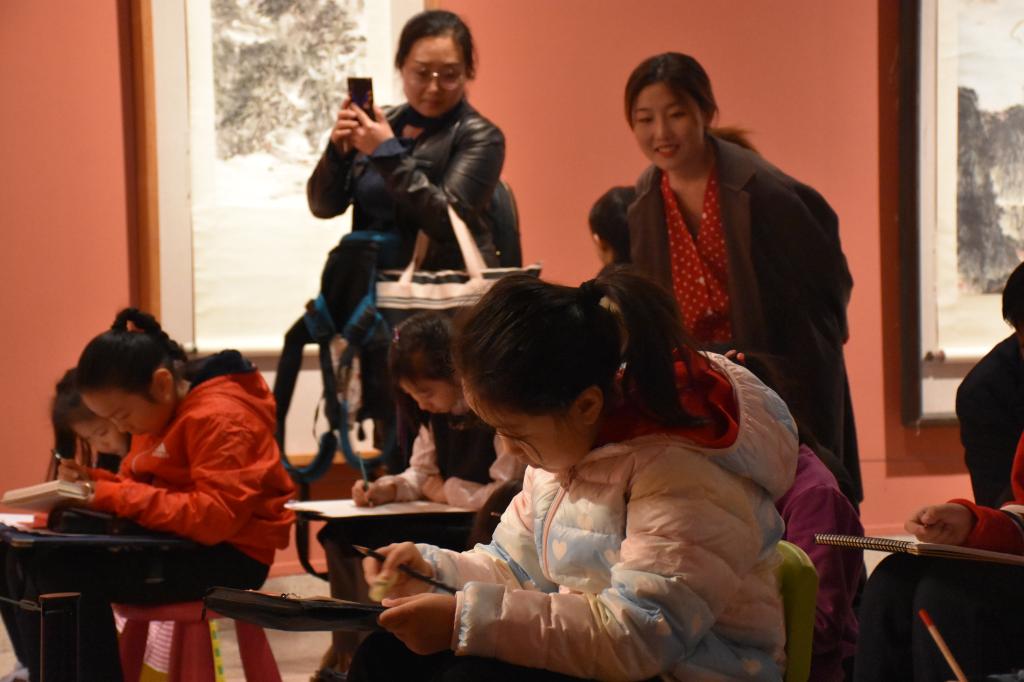 在参展过程中,必赢官网还遇到了当地小学教师带领着一群孩子对馆内展出的画品进行参观和讲解,同时引导他们架起画板、执起画笔,对部分展出作品进行现场临摹。他们可爱的身影出现在这里,体现出孩子们对国家发展的关注,对国家有着发自内心深处的爱国主义情怀。同时,也提醒着必赢官网全体师生更应该加大弘扬爱国主义力度,时刻关注祖国发展。