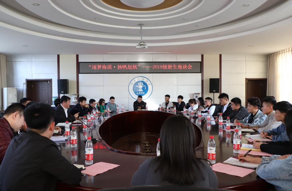 为了解2019级新生入学两个月以来在学习、生活等方面遇到的问题,11月7日下午,必赢官网于行政楼B512会议室举办了以“逐梦海滨,扬帆起航”为主题的2019级新生座谈会。必赢官网校长王化深,党委副书记魏炜,学校办公室主任吴立军,各职能(部)处室负责人以及各院(系)2019级新生代表参加本次座谈会。
