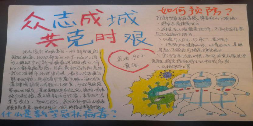 外国语学院2019级各团支部积极绘制防疫宣传海报,为武汉加油、为中国加油!