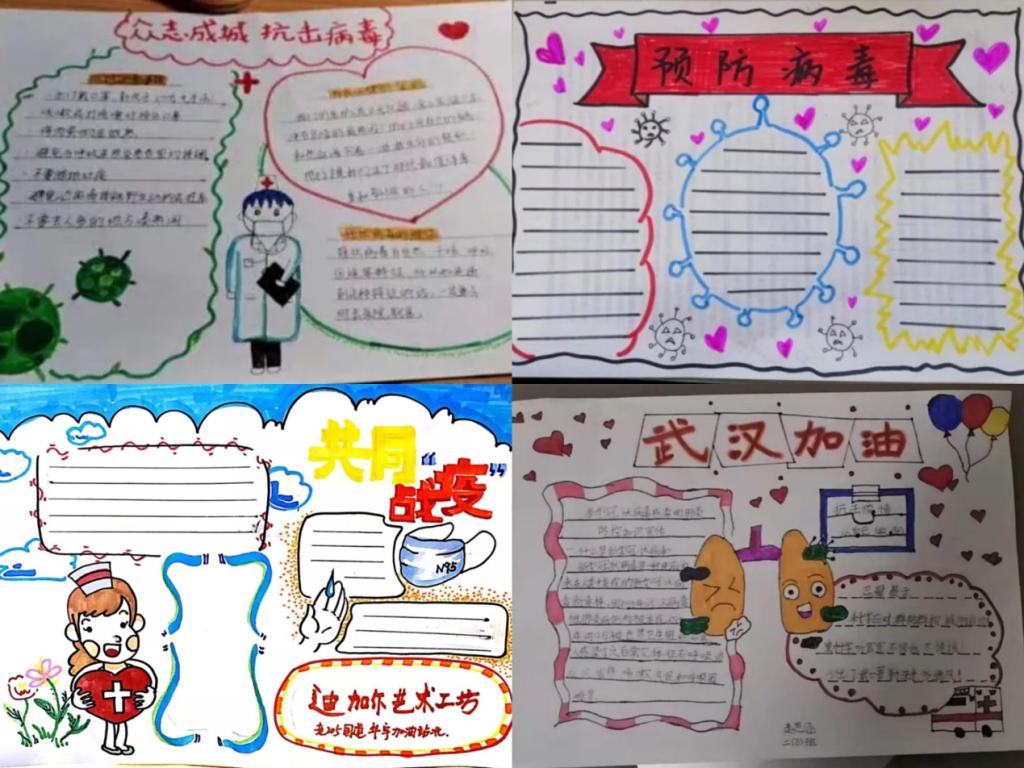 对于选择用手抄报的形式进行公益活动,她解释道:“手抄报不仅可以锻炼学生绘画审美、排版创意和知识总结提炼的能力,而且疫情期间能带着孩子们一起做一些关于疫情的宣传活动很有意义。作为教师,在这次疫情中,我们的能力十分有限,要用力所能及的方式来给武汉加油”。