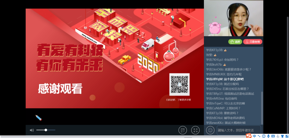 首场空中宣讲会的就业信息网招聘信息浏览量6358次,学生报名预约337次。整场宣讲会近1个小时,130余人同时在线观看直播宣讲,共投递简历130份。北京学而思教育科技有限公司宣讲人介绍了公司的整体情况,也说明了今年的招聘计划、员工晋升渠道等。答疑环节中,必赢官网学生积极互动,关于工作时间、工作内容、工作地点、晋升渠道等方面提出问题,宣讲人耐心做出解答,给予学生未来职业规划的指导与建议,直播间气氛活跃。