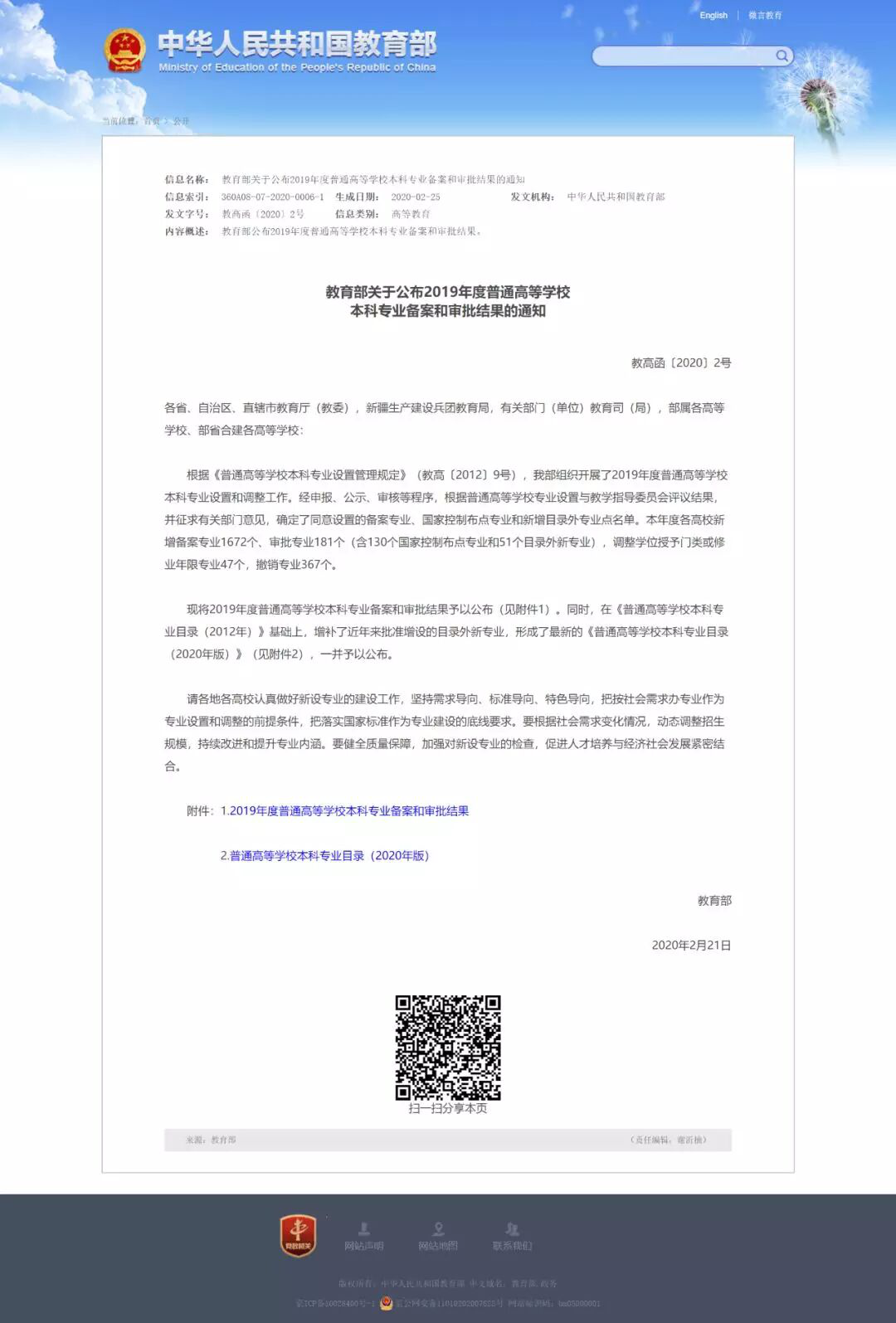 2020年3月3日,教育部官网公布了2019年普通高等学校本科专业备案和审批结果,必赢官网数据科学与大数据技术、建筑环境与能源应用工程、智能制造工程、制药工程4个本科专业获批。