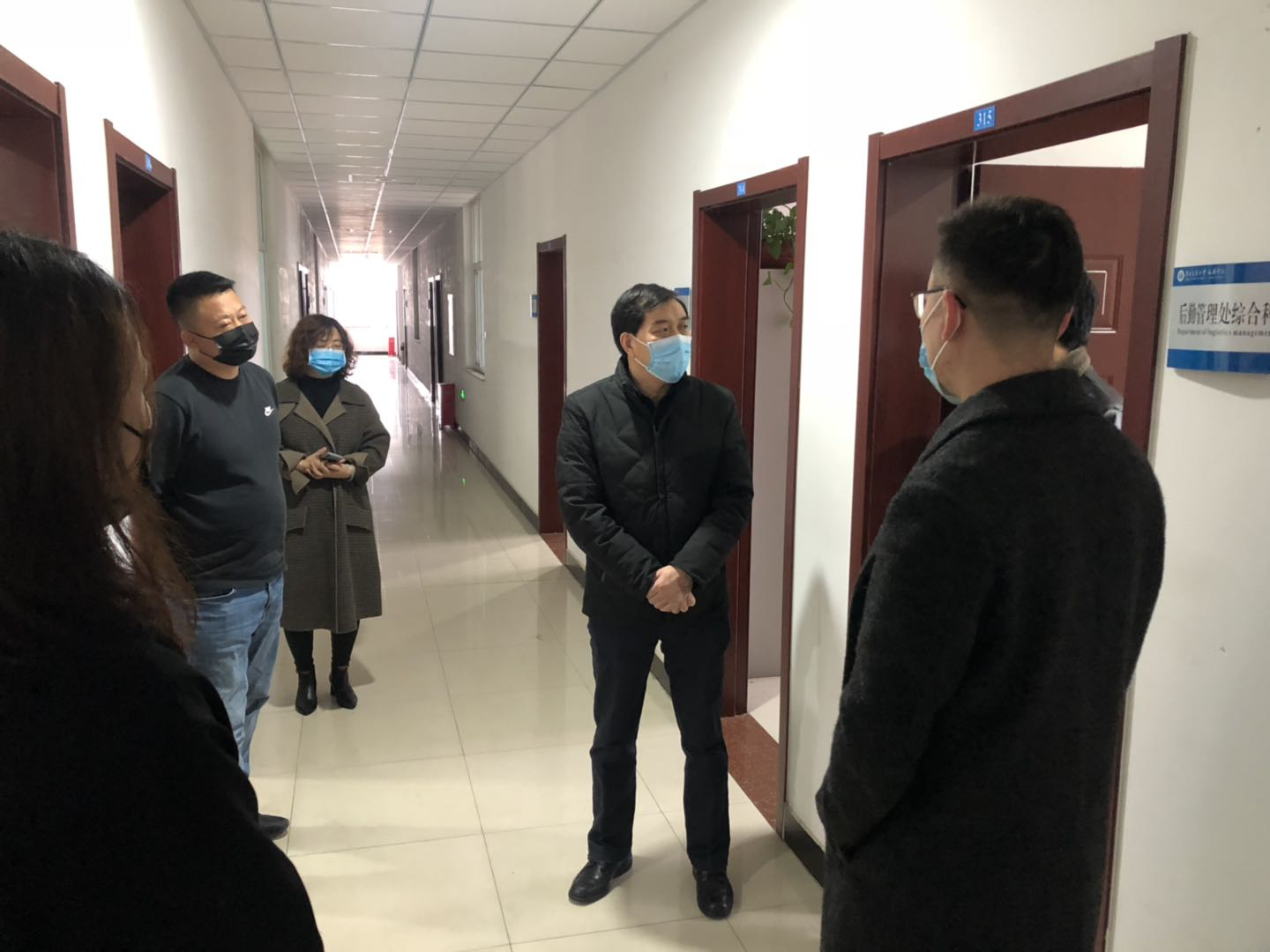 走访检查中,魏旺强书记一行先后走访了学校东门检测口,后勤服务有限公司以及总值班室等,一一看望了正在值守的一线工作人员,向坚守在一线的工作人员表示慰问,并且感谢他们在疫情面前不畏困难、战斗一线。