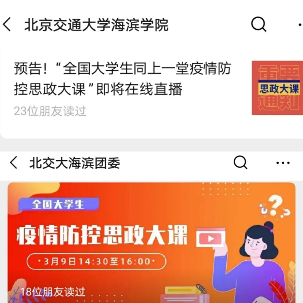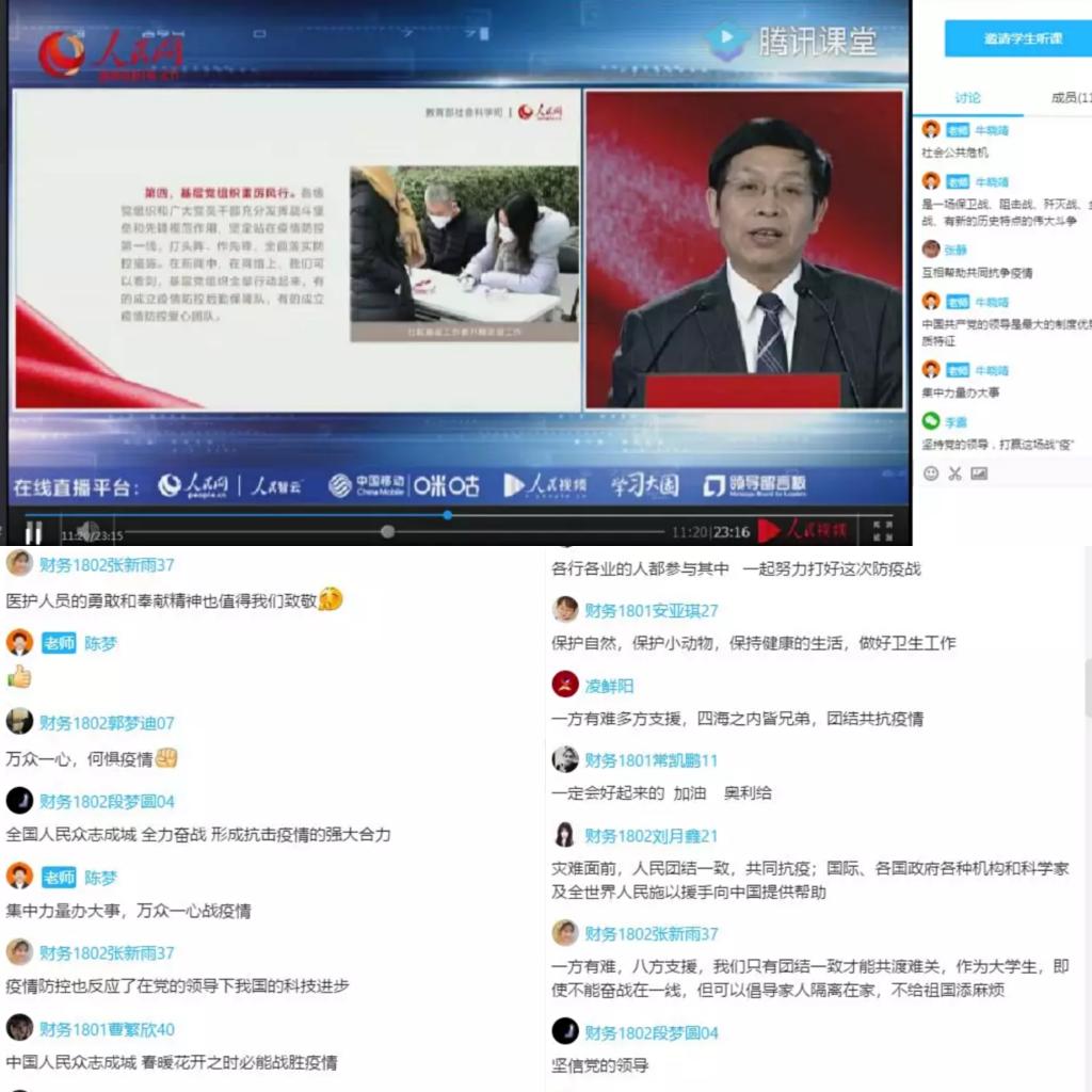 必赢官网党委高度重视“全国大学生同上一堂疫情防控思政大课”的组织工作,宣传统战部、校团委、基础教学部思政教研室等单位和各学院(系)第一时间发布收看通知,思政教研室更是将“全国大学生同上一堂疫情防控思政大课”纳入到疫情防控期间思政课的教学统一安排之中,合理设计教学环节,组织学生进行线上集体讨论,引导学生畅谈感想,将思想政治理论课教学优势转化为防疫斗争的强大力量。