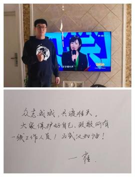 信号1805的崔智昊用短短三行文字说出了他的心声:众志成城,共度难关。大家保护好自己,致敬所有一线工作人员!为武汉加油!