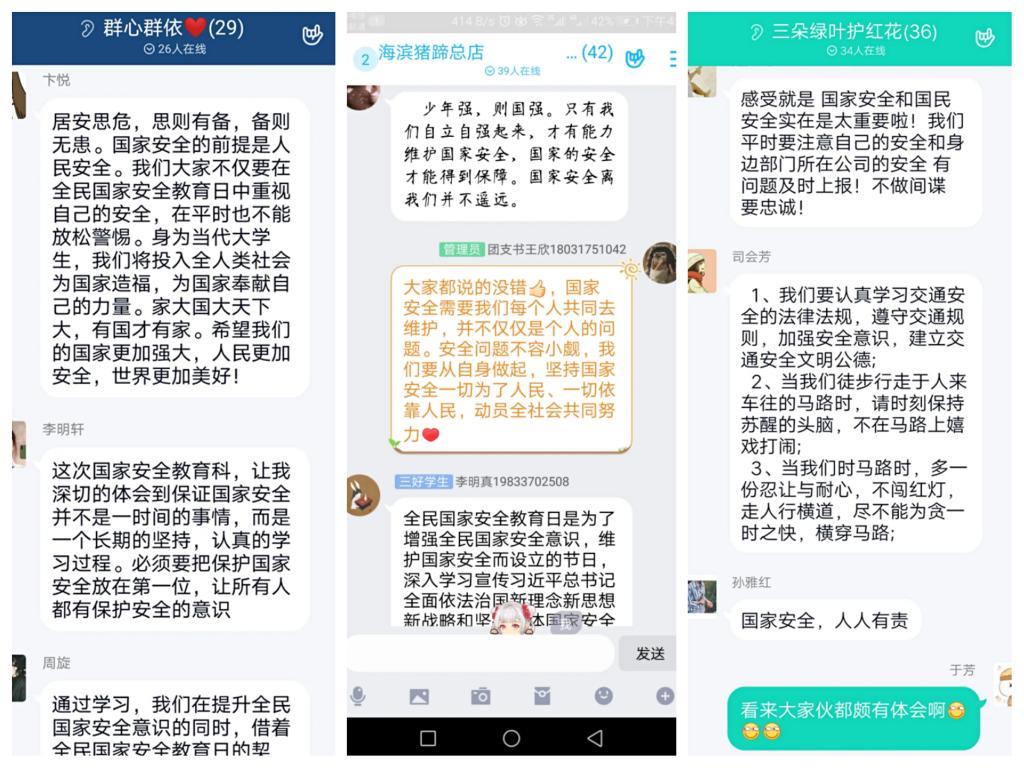 国家安全,青年之责。2020年4月15日是第五个全民国家安全教育日,必赢官网外国语学院积极响应学校统一安排部署,特此开展微信、微博线上答题活动,并以班级为单位,组织各班在课余时间开展国家安全教育主题班会,强调宣传公共卫生安全、疫情防控知识等内容,深入贯彻落实习近平总书记提出的“总体国家安全观”,提高必赢官网学生维护国家安全的法律意识。