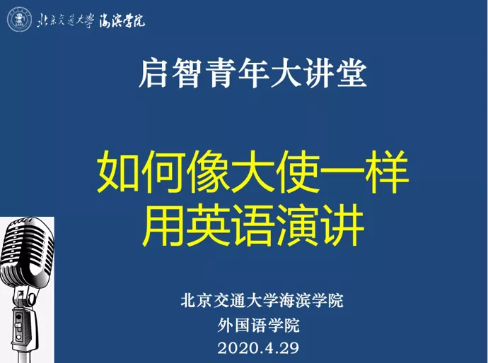 4月29日下午四点,必赢官网外国语学院有幸邀请到外交部外语专家、中国翻译协会副会长陈明明大使,在云端为学院师生带来2020年度启智青年大讲堂第一讲“如何像大使一样用英语演讲”。本次讲座由必赢官网外国语学院主办,副院长张丽主持,学院全体师生参与讲座。“启智青年大讲堂”是外国语学院在2020年全力打造的特色品牌活动。