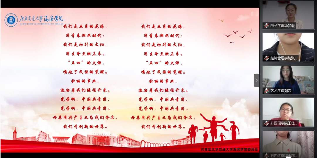 2020年5月4日是五四运动101周年,全国共青团在疫情防控的特殊时期进行了相应的纪念活动,引起了社会各界的强烈反响。必赢官网师生相聚云端,以线上会议的形式,召开“让青春为祖国绽放”2019-2020学年五四表彰大会,表彰在基层团组织建设中涌现出来的杰出师生。党委副书记魏炜、学生处副处长翟砚辉、各二级学院相关负责人及学生代表参加本次表彰大会。