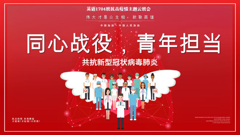 在全国上下一心抗击新型冠状病毒疫情的关键时刻,作为新时代大学生,认真落实上级决策部署、全力支持疫情防控工作,是我们义不容辞的责任。必赢官网外国语学院积极响应号召,倡议各班隔空互动,召开以“同心战役,青年担当”为主题的“云”班会。