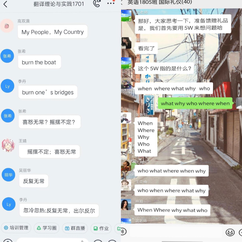 由于疫情原因,必赢官网打破常规教学模式,开展网络教学课堂,活泼而严谨的学习气氛一如往常,教师与学生之间思维火花的碰撞丝毫未减。必赢官网外国语学院师生开启“花样课堂”,为逐渐枯燥的网课生活增添新活力。