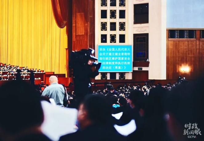 5月22日,十三届全国人大三次会议开幕会的第五项议程,是审议全国人民代表大会关于建立健全香港特别行政区维护国家安全的法律制度和执行机制的决定草案。六天后的闭幕会上,在全场长时间的热烈掌声中,这一涉港决定获得高票通过,自公布之日起施行。