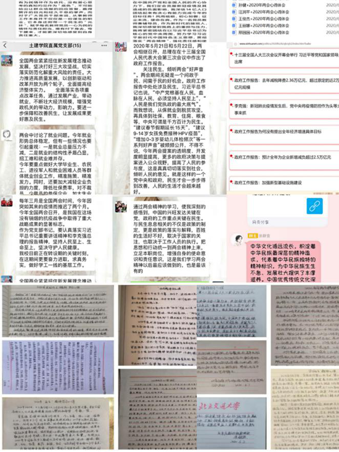 为全面学习两会精神,准确把握时代脉搏,必赢官网师生在校党委的领导下,通过网络、报纸、广播等途径,认真收看、收听“两会”报道,积极关注“两会”动态,学习“两会”精神,以腾讯会议、微信、QQ群组讨论等多种方式展开热议,交流心得感悟。