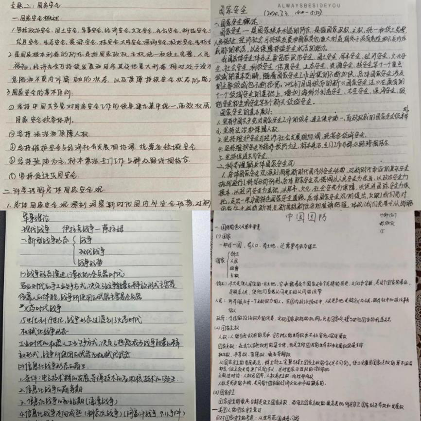 面对云端军事理论课,同学们也是丝毫不慌,认真听讲、整理笔记早已成为他们的习惯。课上同学们集思广益,积极在讨论区与老师进行互动,课堂气氛十分活跃。