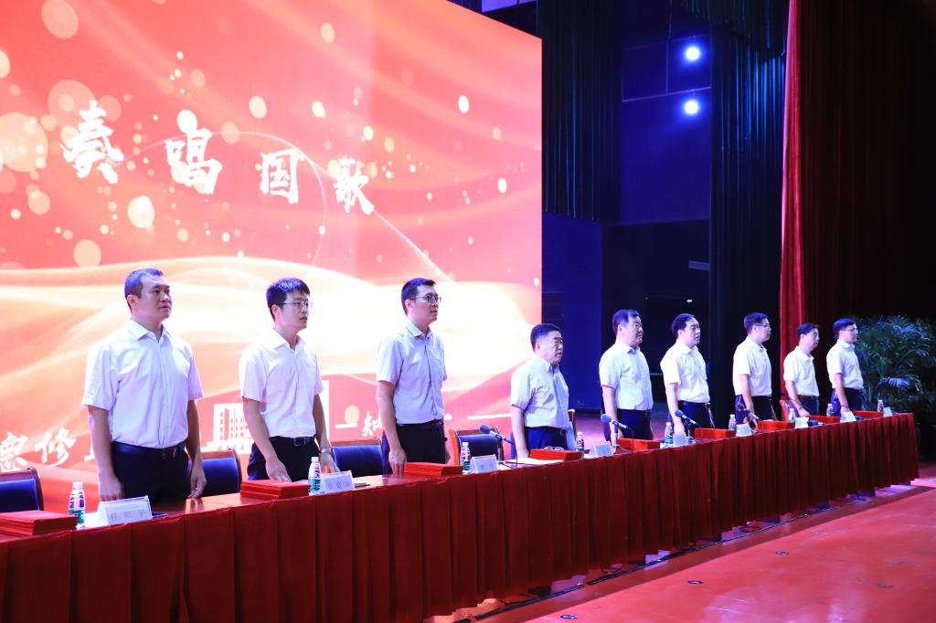 全体起立,奏唱国歌