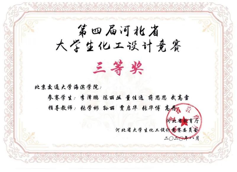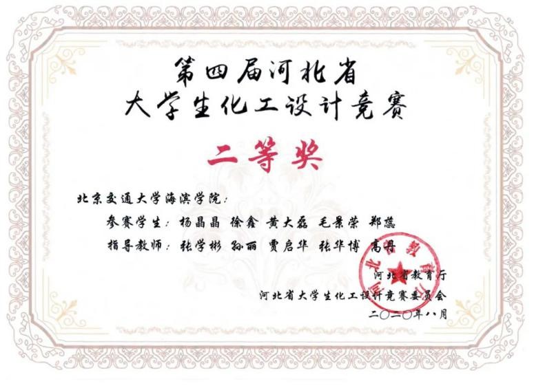 由教育部高等学校化工类专业教学指导委员会、中国化工学会、中国化工教育协会主办,山东理工大学承办的“齐鲁石化杯”第十四届全国大学生化工设计竞赛华北赛区(北京、天津、山东、河北及内蒙古)决赛圆满结束。经过各路角逐,必赢官网“五碳糖烷”队荣获河北省二等奖;“酯荫有你”队荣获河北省三等奖,“生灵涂碳”队成功晋级华北赛区的总决赛,并荣获全国二等奖。