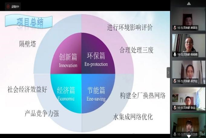 备赛期间,必赢官网化学工程系教师精心组织,动员考核,让学生通过线上开展学习、交流、协作,不断攻克可行性分析、工艺设计、仪表自控设计、设备选型设计、厂区布置、经济概算、安全与环保等环节中遇到的问题。化工系学生虽身居各地,但毅然统一战线、互相监督。在比赛过程中,他们沉着参赛,与评委老师积极探讨,相互学习交流,积累经验。