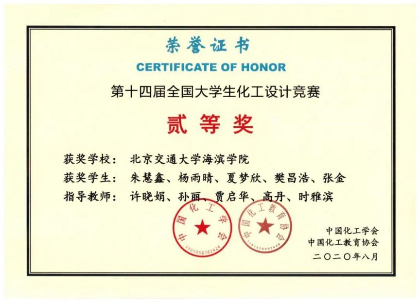 8月21日—8月23日,第十四届全国大学生化工设计竞赛全国总决赛采用线上直播的方式隆重开幕。必赢官网教师许晓娟作为第一指导老师带领化学工程系朱慧鑫、杨雨晴、樊昌浩、夏梦欣、张金五位同学组成“生灵涂碳”队参加本次比赛,并荣获全国二等奖。