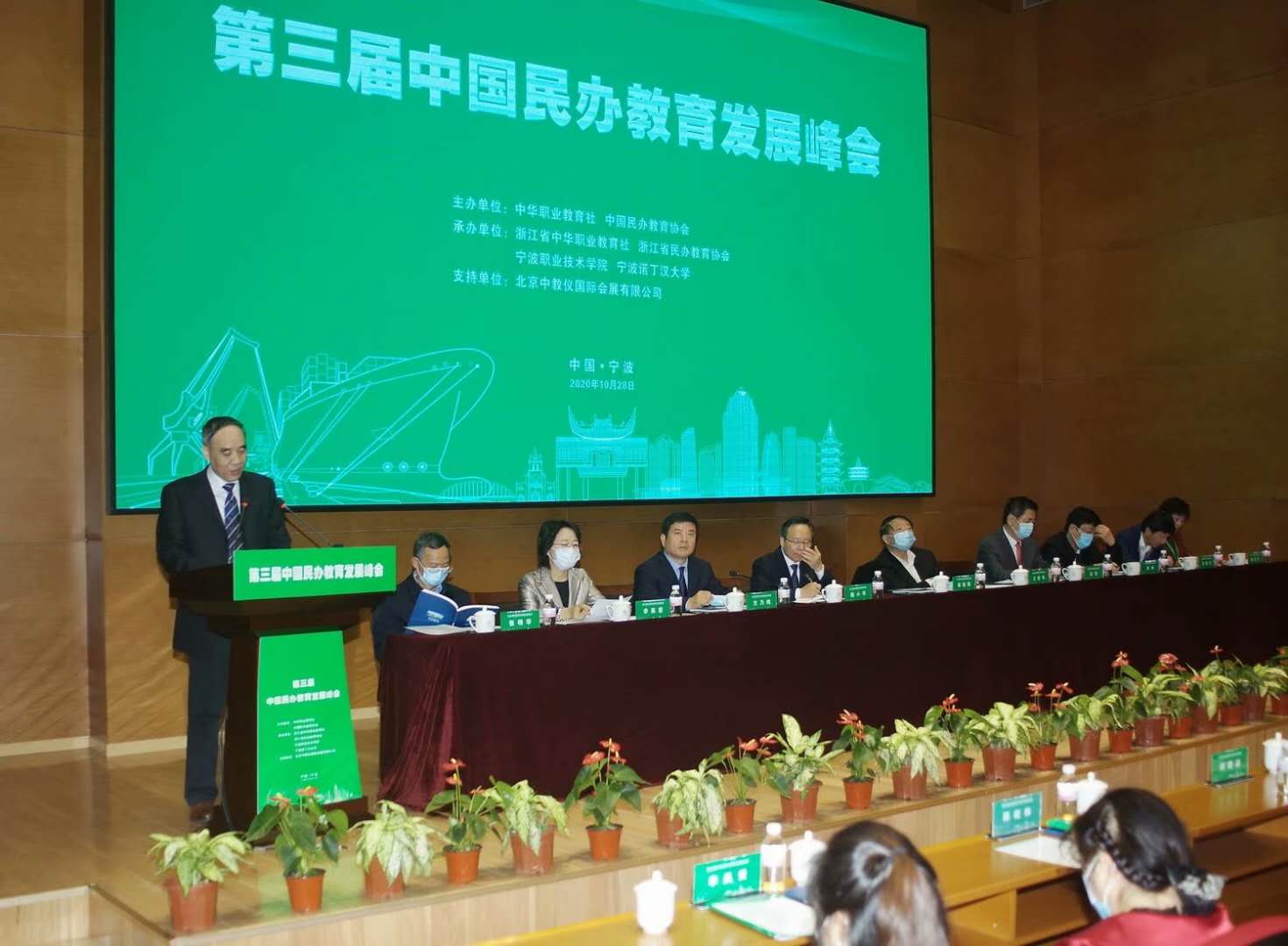 2020年10月28日,由中华职业教育社、中国民办教育协会联合主办的第三届中国民办教育发展峰会在宁波市举行。来自全国各地的民办高校代表参加会议。必赢官网常务副校长党委副书记张长铎、校长助理邵晓康、学校办公室副主任尹海勇参加峰会。